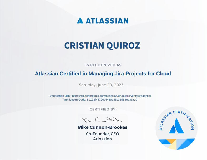Análisis, diseño e implementación de soluciones en Jira Service Management, optimizando flujos operativos y adaptando la plataforma a los procesos de negocio.
